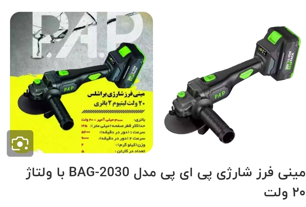 مینی فرز شارژی براشلس 20ولت پی ای پی مدل BAG-2030ناموجود